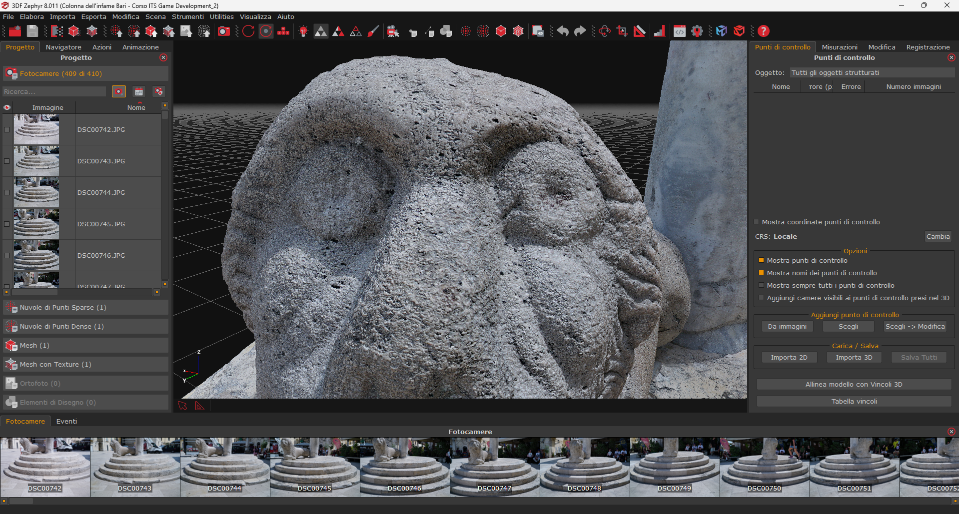 The subject of our photogrammetry session was the historic Colonna Infame (Infamous Column), located in the iconic Piazza Mercantile in Bari. Led by photographer Teresa Romano for the photographic acquisition and data analysis, we transformed this monument into a high-fidelity photogrammetry 3D model.